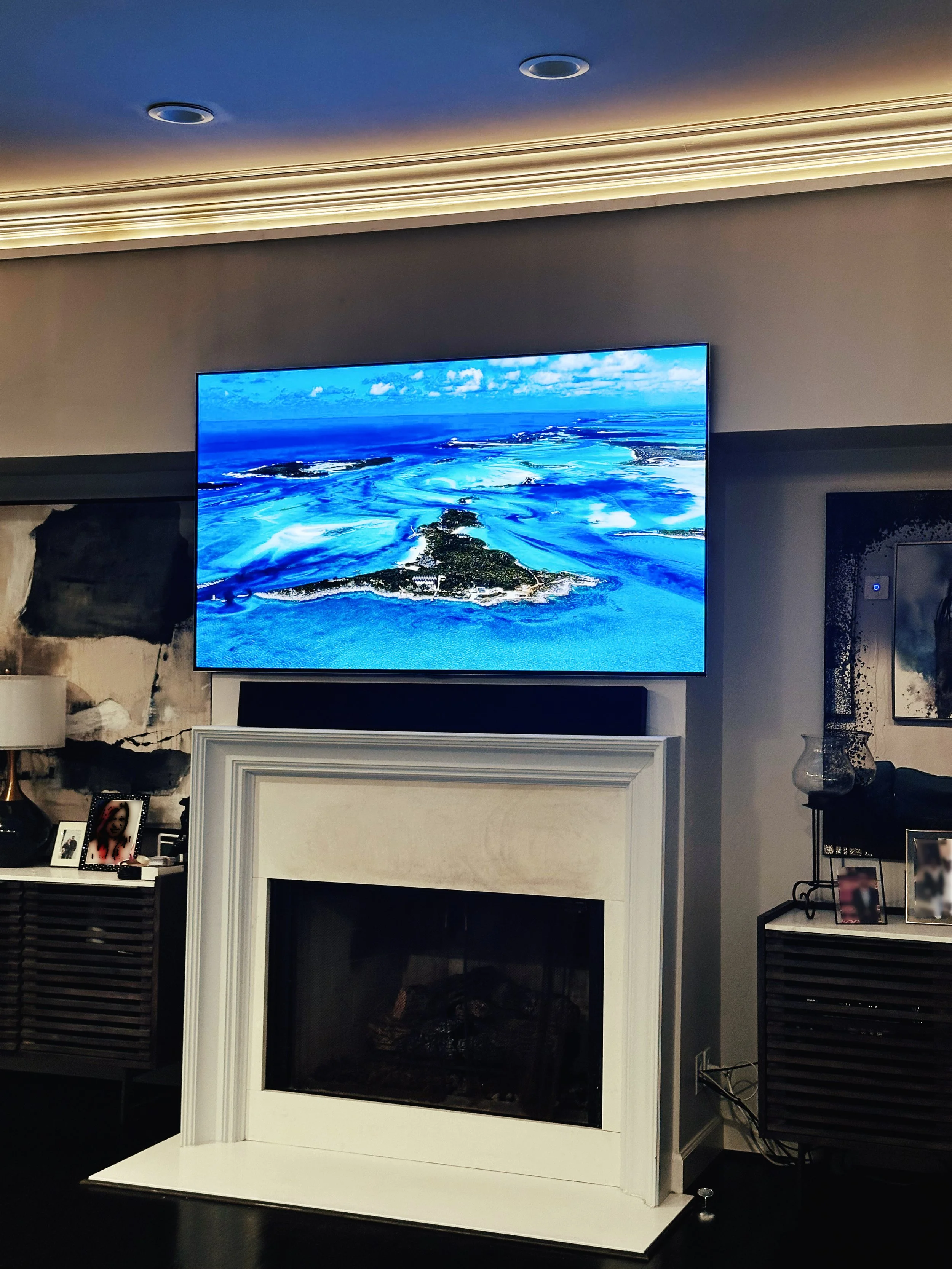 Some rooms just call for something bigger. Whether it's an 83" OLED anchoring a dedicated home theater or a 115" Samsung commanding a great room or media lounge, our large format displays don't just fill a wall — they completely transform how a space feels. These are room defining centerpieces, and getting the installation right matters just as much as picking the right screen. Iron City A/V specializes in large format installs, handling everything from structural mounting and cable management to full calibration so the picture is as impressive as the size.